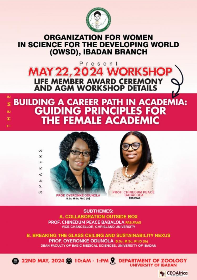 Prof. Oyeronke A. Odunola to speak at Organization For Women In Science For Developing World (OWSD) Workshop - Wednesday, 22 May, 2024